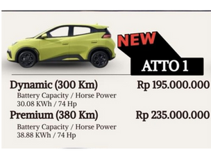 KKB BYD Atto 1 paket kredit dp terkecil uang muka paling minim Angsuran cicilan dijamin teringan terbukti termudah termurah tercepat proses Online.